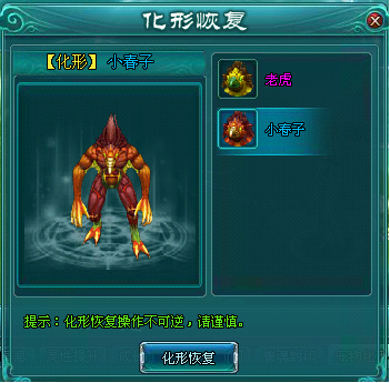 只要你拥有自己的宠物宝宝,不管是什么宠物,都可以进行化形。化形之后的样子可以永久保存。