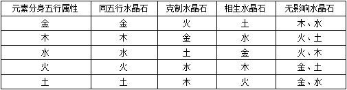 元素分身有五行,元素分身水晶石也有五行,而五行之间相生相克。所以,在13层中的元素水晶石会对元素分身产生助长和压制的作用。至于具体的压制情况,就要根据当前的元素分身的五行属性来决定。具体情况请看下表: