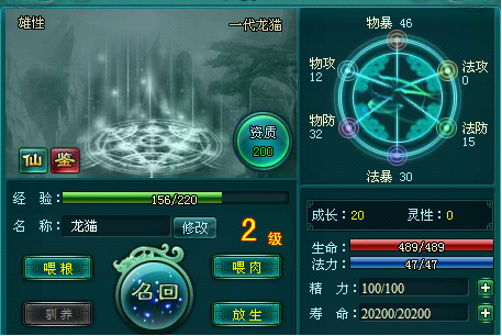 游戏中获得宠物有很多种方法,最简单的莫过于在进入游戏伊始,通过新手任务得到一只资质不错的龙猫宠物,不过这个家伙是平衡型宠物,最大的特点就是……没有特点;