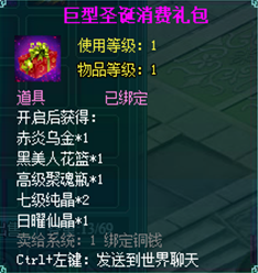 2. 打开消费礼包可获得赤炎精魄、赤炎乌金、日曜仙晶、补天灵石、七级纯晶等珍贵道具。
