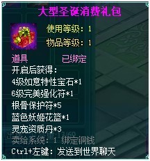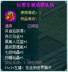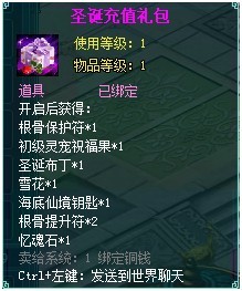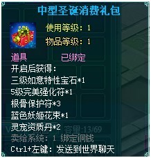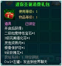 活动时间内,35级以上的玩家只要每天登陆游戏即可获得“圣诞欢庆礼包”奖励;