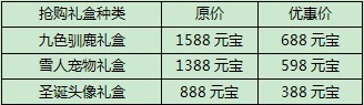 为了回馈广大仙友,在圣诞期间,九色驯鹿,高级雪人宠物(天赋技能—千里冰封),圣诞公主、圣诞王子头像等将以最优惠的价格出现在抢购优惠区,先到先得,抢完为止。