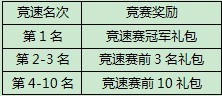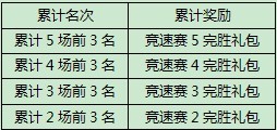 竞速赛完胜礼包在比赛全部结束后发放。