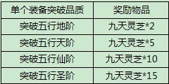 2. 五行等级达到整十后便可突破,成功突破便可获赠九天灵芝。