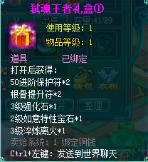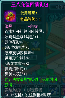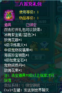 1、以上礼包中的物品除了宠物蛋外,其他全为绑定不可交易。