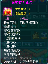 2、勤劳魅力礼包有几率开出根骨保护符、玫瑰花瓣、4级淬炼离火等珍贵道具。