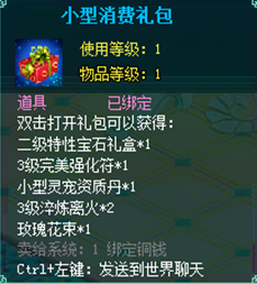 | 消费满555元宝 | 小型消费礼包 | 活动时间,只能领取一次 |