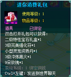 | 消费满155元宝 | 迷你消费礼包 | 活动时间,只能领取一次 |