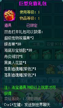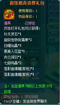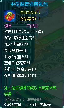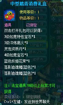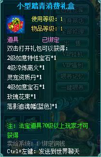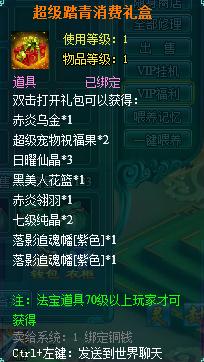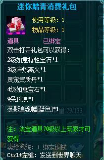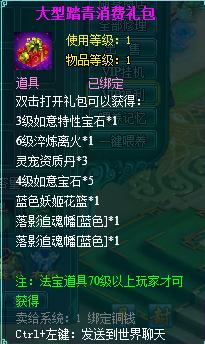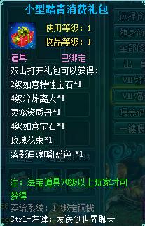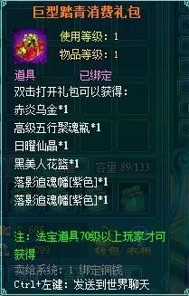 1、消费礼包中的法宝道具等级70级以上玩家才可获得。