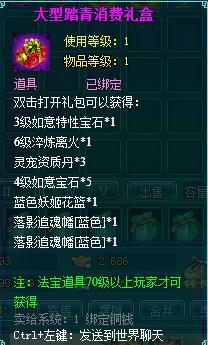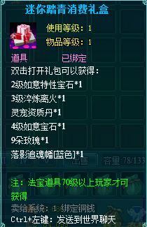 1、礼盒中的法宝道具等级70级以上玩家才可获得。