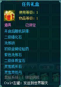 2、同活动期间,完成跑商、灵兽护送、循环任务、仙盟日常、宗门任务、百炼成仙/龙宫寻宝、诛邪令、寻宝奇兵等任务,可获得“任务礼盒”额外奖励。