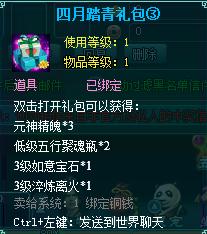 四月踏青季,抢购商人为众位仙友准备了四月坐骑礼盒,四月宠物礼盒、根骨保护符 ,抢购商人处的道具价格将大大低于市场价,请众位仙友千万不要错过良机。