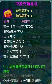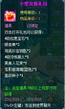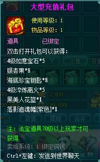 充值礼包中的法宝道具均为70级以上玩家才能获得。