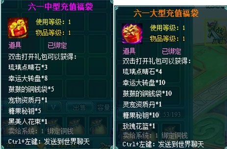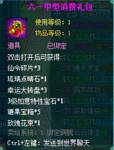 六一儿童节到来,活动仙子将众多糖果宝箱藏在修真大陆各地,聪明可爱的孩子一定可以找到它们,不过宝箱需要童真秘钥才能开启,成功开启通过宝箱,便可随机获得糖果、变身卡等道具。