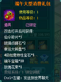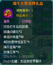 粽子宝箱可使用端午秘钥开启,开启后有概率获得粽子,粽子可寻找屈原兑换各种珍贵物品。