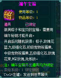 由于龙舟争度赛把鱼怪的惊走,无处可逃的鱼怪开始逃窜并躲藏在太机城中,只要活动期间通过击杀各大副本boss将有概率获得小粽子和粽子宝箱。
