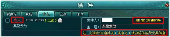 邮件标注为【私人信息】并且会在邮件内容上方有明确说明是(非官方)信件