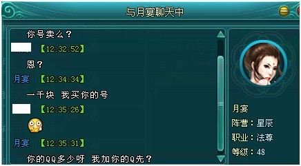 另外部分玩家在新服会收到骗子以“预定四象装备/宝石”等的信息,要求玩家交易元宝之后进诈欺行为。