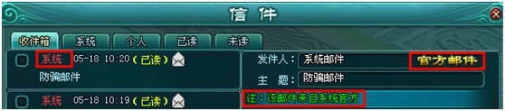 标注【系统邮件】,标签中打着是“系统”,并且邮件内容上面有注:邮件来着系统官方。