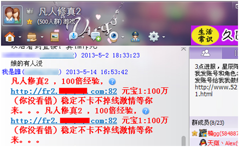 玩家进入所谓的公会QQ群或者YY之后,不法分子发布会在公告或者其他地方发布新的注册链接,让玩家注册,注册之后登陆的并不是《凡人修真2》,最后的结局就是玩家充值的利益被这些公会侵吞,设置玩家的账号信息被公会售卖,导致账号被盗、被清洗等严重后果,玩家的财产受到了损失!