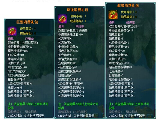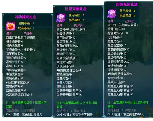 2、充值礼盒中的法宝道具均为70级以上玩家才能获得。