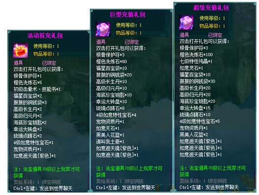 2、充值礼包中的法宝道具均为70级以上玩家才能获得。
