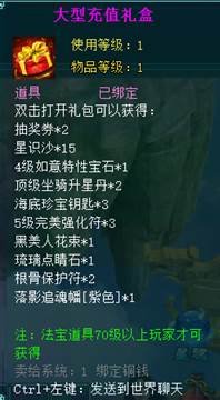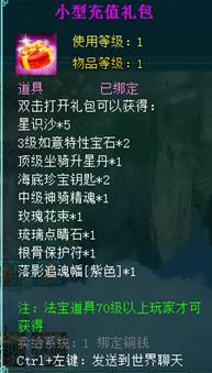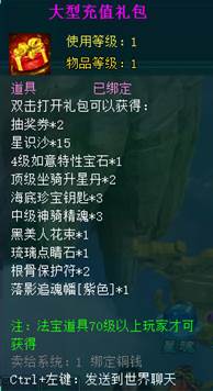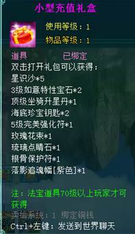2、充值礼包中的法宝道具均为70级以上玩家才能获得。