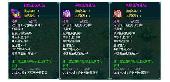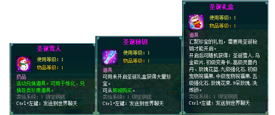 圣诞礼盒:可从副本、活动期间出现的boss掉落,需圣诞秘钥才能开启。