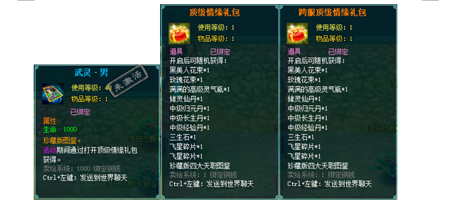 开启顶级情缘礼盒将有机会获得绝版四大职业卡通图鉴。