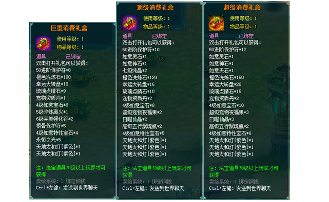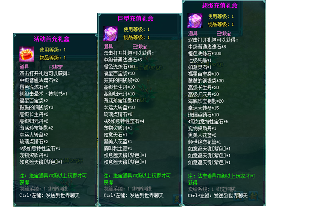 2、充值礼盒中的法宝道具均为70级以上玩家才能获得。