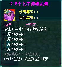 活动期间内,使用七星神魂丹或是元宝提升星魂,将有机会获得2-10倍的暴击经验;每累计提升30次就会获得一个七星神魂丹礼包奖励。
