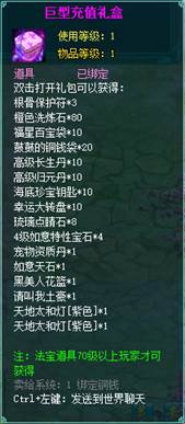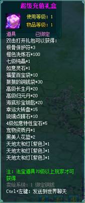 2、充值礼盒中的法宝道具均为70级以上玩家才能获得。