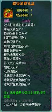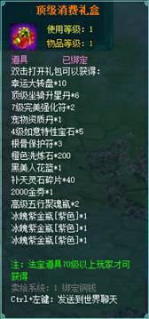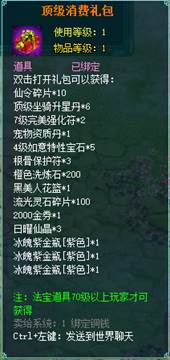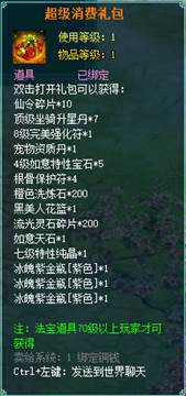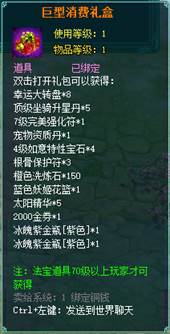 1、消费礼包中的法宝道具等级70级以上玩家才可获得。