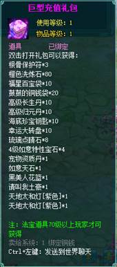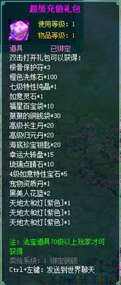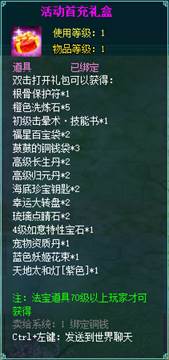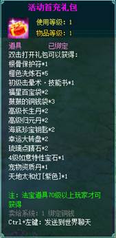 2、充值礼包中的法宝道具均为70级以上玩家才能获得。
