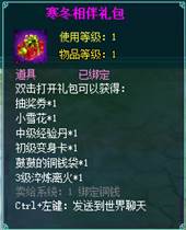 2、寒冬相伴礼包中的物品均为绑定道具,不可交易。
