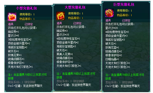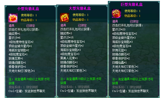 2、充值礼盒中的法宝道具均为70级以上玩家才能获得。