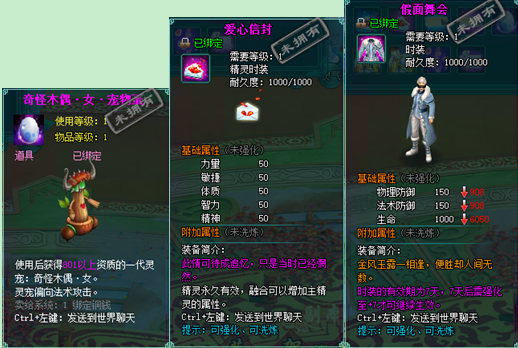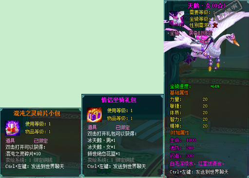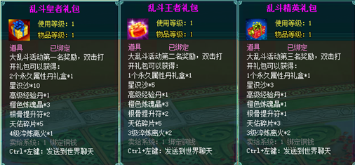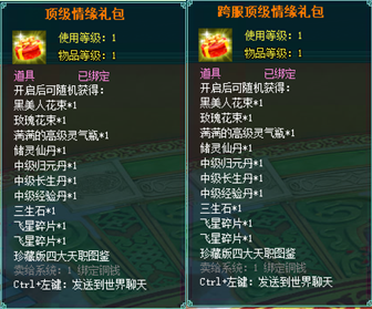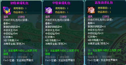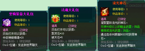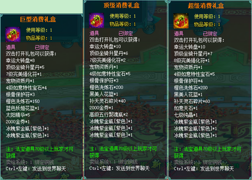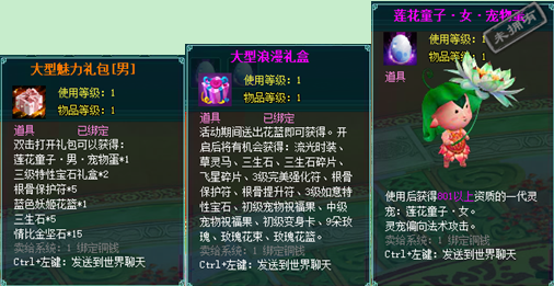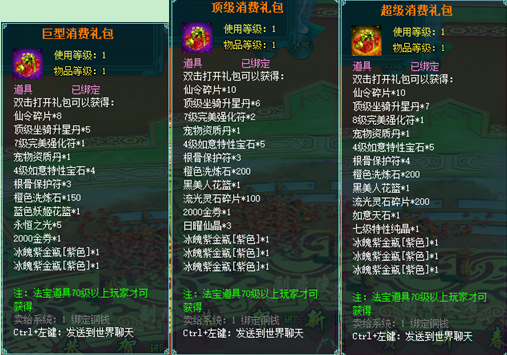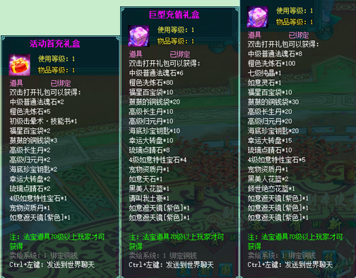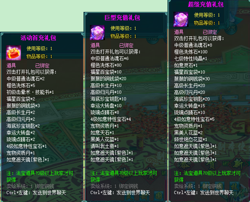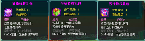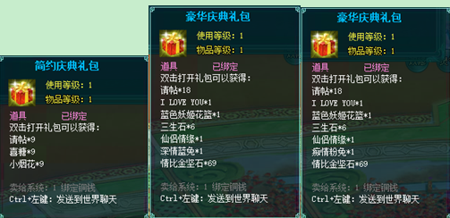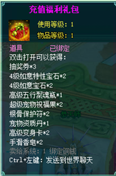 1、以上礼包中的物品除了宠物蛋外,其他全为绑定不可交易。