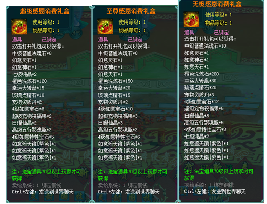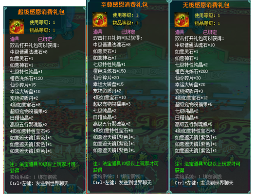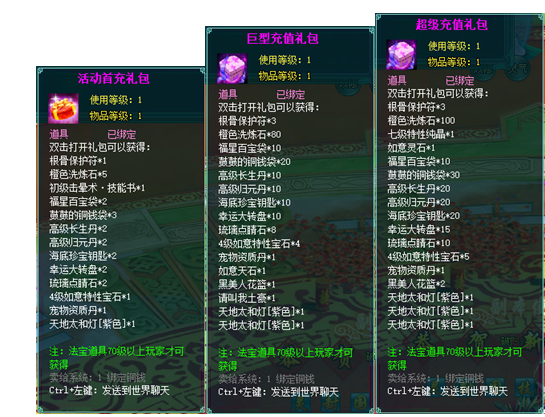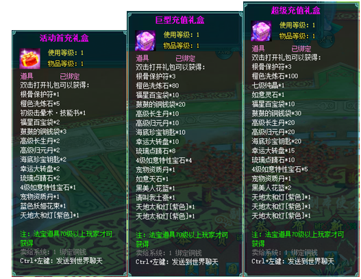 2、充值礼盒中的法宝道具均为70级以上玩家才能获得。
