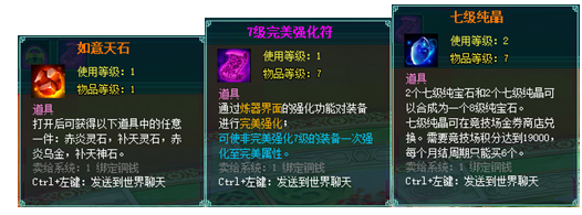 2、在摇动梧桐树的过程中,幸运者将有机会直接获得5级如意宝石、福字小包、根骨保护符、七级纯晶、7级完美强化符等极品道具。