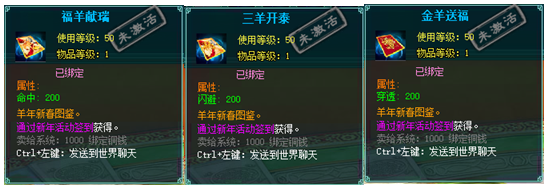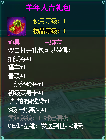 2、羊年大吉礼包中的物品均为绑定道具,不可交易。