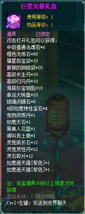 2、充值礼盒中的法宝道具均为70级以上玩家才能获得。