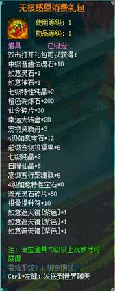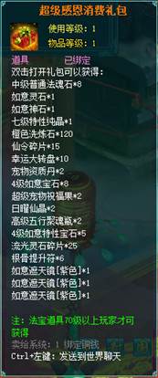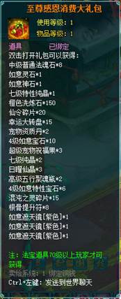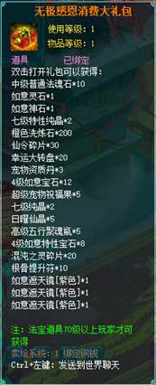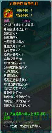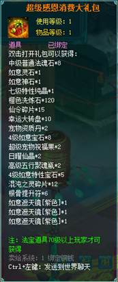1、消费礼包中的法宝道具等级70级以上玩家才可获得。