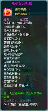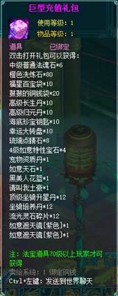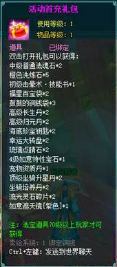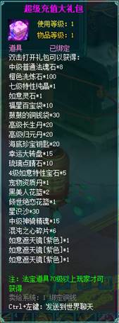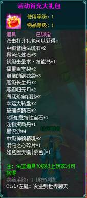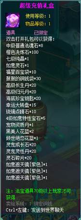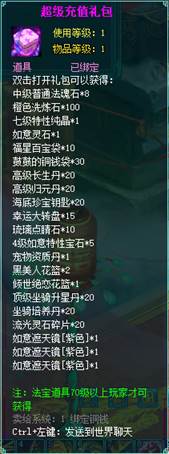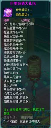 2、充值礼包中的法宝道具均为70级以上玩家才能获得。