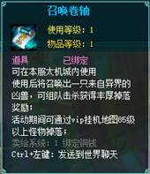 1、召唤卷轴只会在活动期间于vip挂机地图中85级以上怪物有几率掉落,均为绑定;