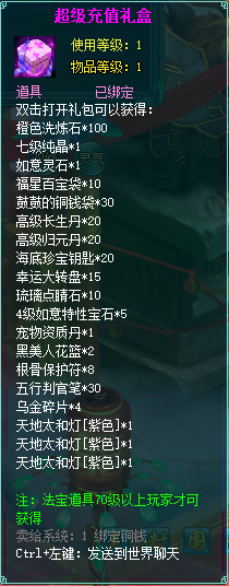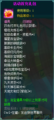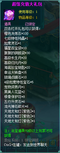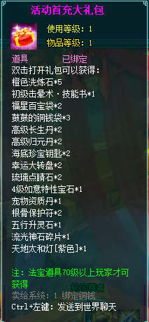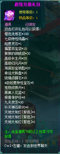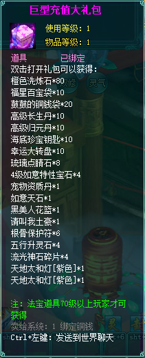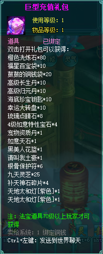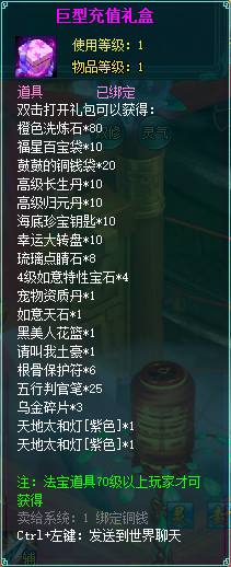 2、充值礼包中的法宝道具均为70级以上玩家才能获得。