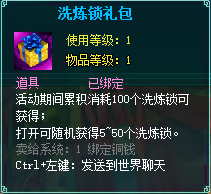 每累计消耗100个洗炼锁 可返还1个洗炼锁礼包