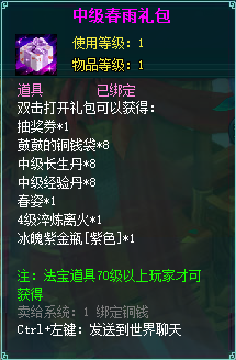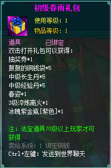 1、累计登录2天可获得初级春雨礼包