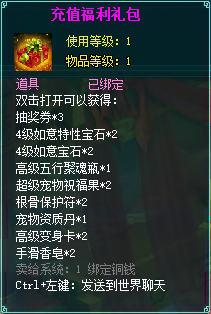 充值有礼(世界等级100级以上)