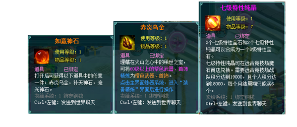 1、炼化物品时若使用了绑定的道具,则炼化出的物品为绑定。