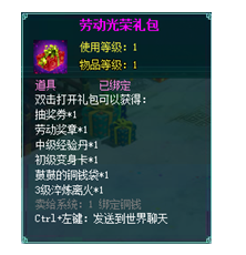 2、劳动光荣礼包中的物品均为绑定道具,不可交易。